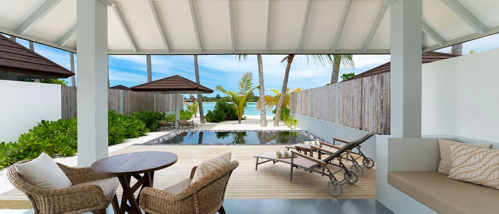 Le Beach sono alloggi sulla spiaggia o a pochi passi da essa, spesso con accesso diretto alla laguna. Alcune categorie, come le Grand Beach Villa with Pool o le Grand Beach Suite with Pool, includono una piscina privata.
